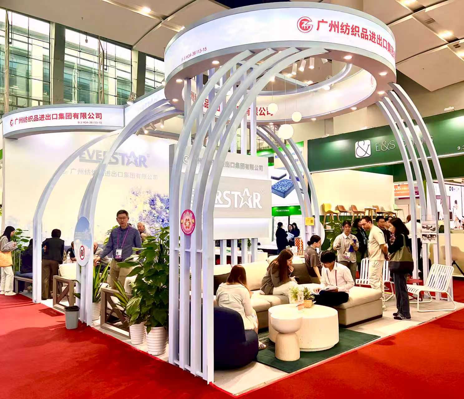 纺出公司的家具展位,所呈现的即是企业环保发展理念的微缩景观,展台主体采用可循环利用的铝合金结构与环保板材搭建,每一处细节都体现企业对可持续发展的坚定承诺。展位本身就是一件“会呼吸”的艺术装置,生动演绎了绿色与美学的融合。