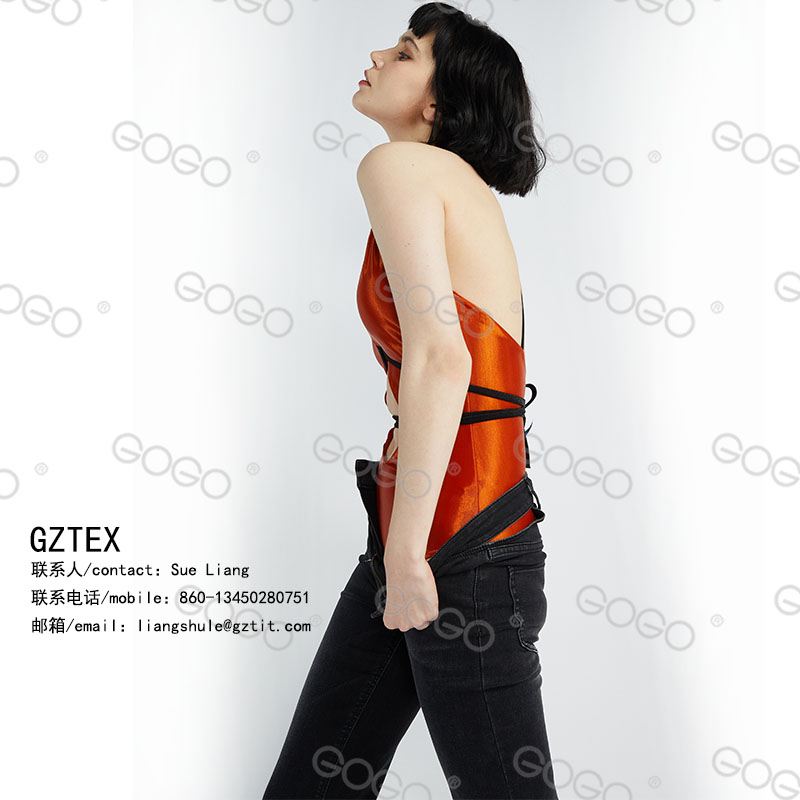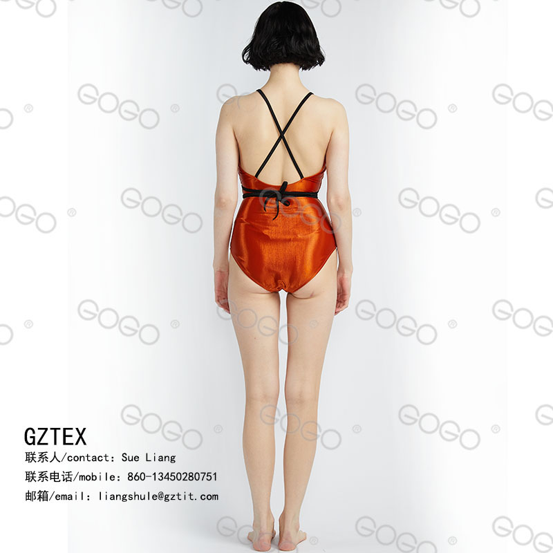 泳衣款式设计独特,凸显女性的身材。金色闪光面料时尚柔软舒服,黑色带子做装饰,可搭配牛仔裤,休闲,时尚